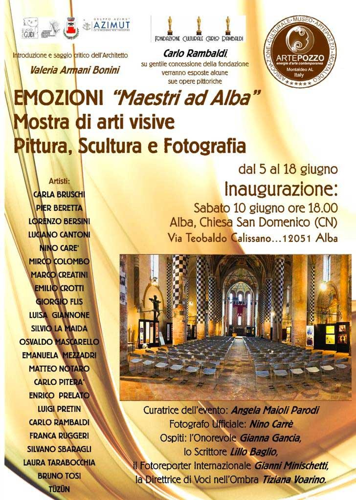 Emozioni "Maestri ad Alba" la Creatività in mostra. Opere appartenenti a varie discipline, pittura, scultura, fotografia, vengono esposte ad Alba, nella chiesa di San Domenico in una mostra curata dall'Associazione "Artepozzo".